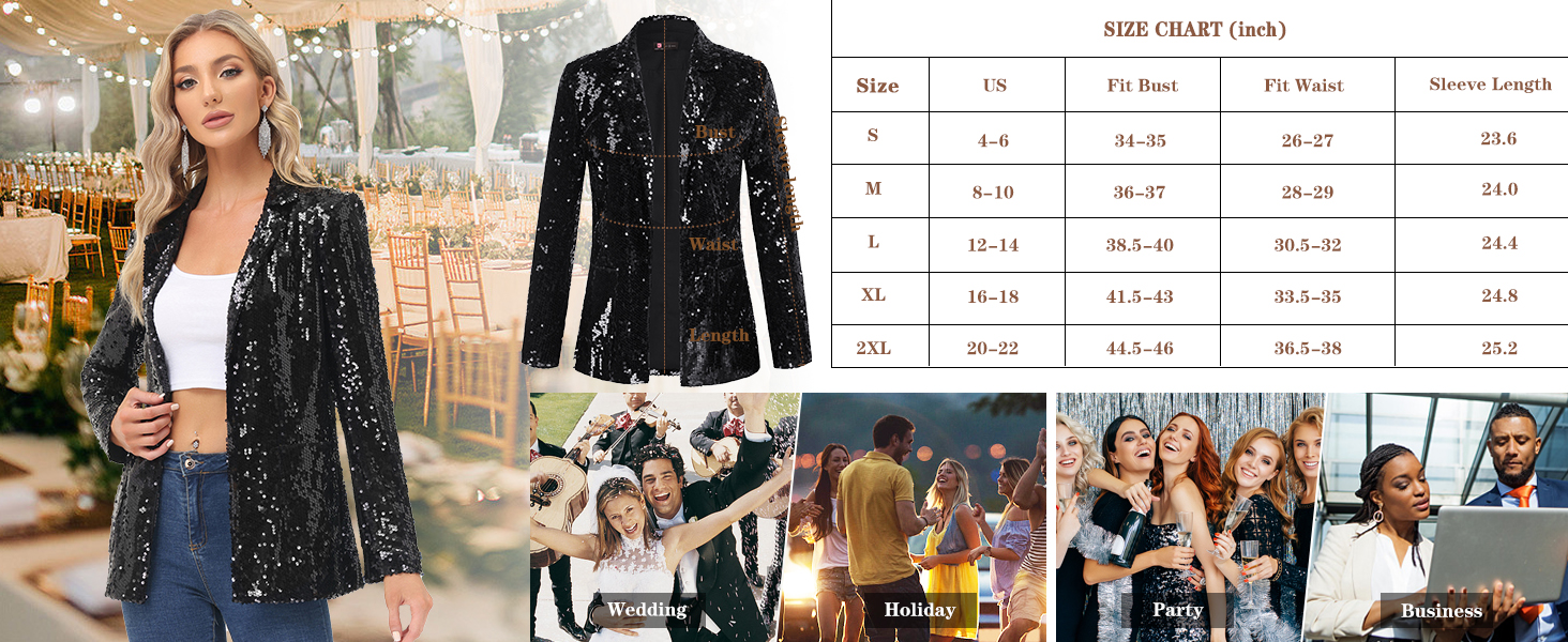 • Slinky and Sophisticated Look! Our sequined jackets have more of a structured look, but they can still be worn relaxed for a comfortable fit. A must have for whole year to create an trendy vibe.