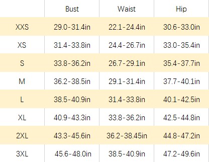 Size Range- XXS-3XL